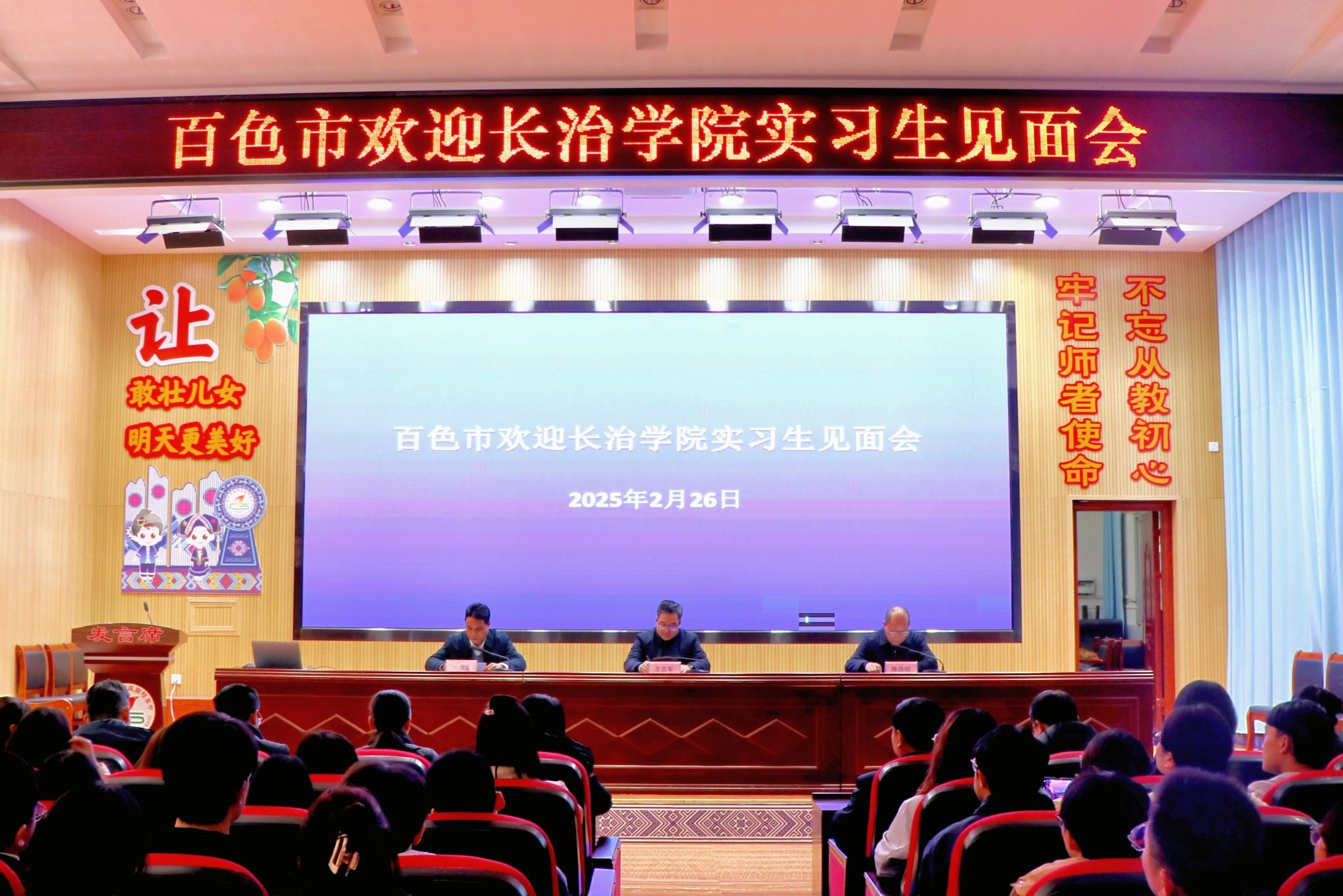 在田阳高级中学,举行了百色市欢迎长治学院实习生见面会,田阳区委常委、宣传部部长钟恒泽主持。会上,百色市教育局副局长陈诗明,田阳区实验中学分校校长黄洪河,我校实习生代表梁佳慧分别发言。王志军表示,文心秀行教育实习是我校承文秀之志的持续行动,是跨省校地合作协同育人的成功之举,是师范教育应用型人才培养和助力百色基础教育的重要举措,希望两方能够继续开展全面、深入、常态化的合作交流,协同推动双方发展再上新台阶。