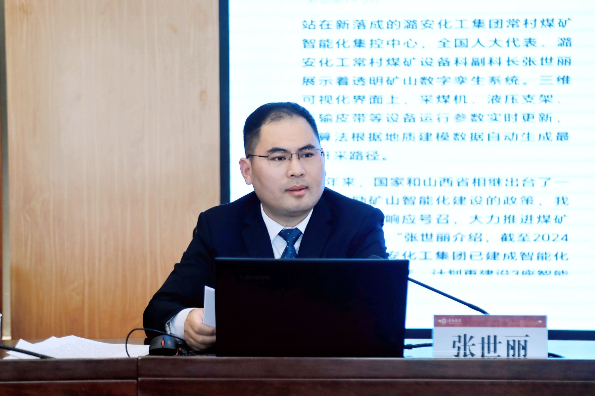 第十四届全国人大代表、潞安化工集团常村煤矿设备科科长张世丽受邀作专题辅导报告。他结合参加两会亲身体会和自身履职情况,介绍了大会基本情况、主要精神和山西代表团履职情况,重点传达了习近平总书记两会期间系列重要讲话精神和政府工作报告主要内容,交流了自己的建言献策情况。